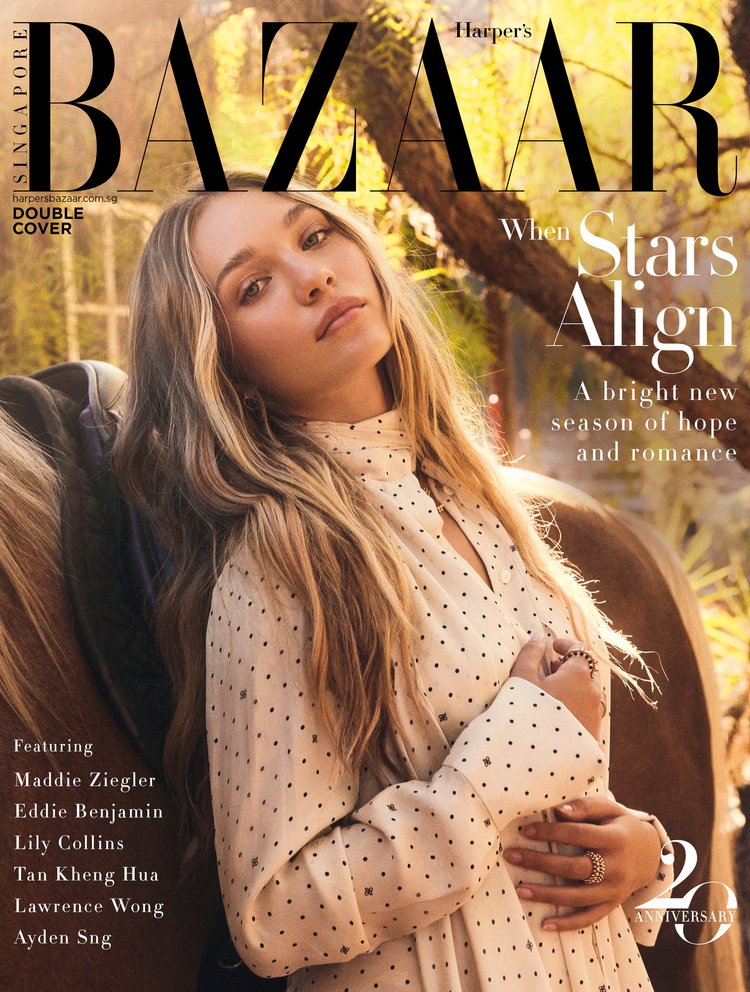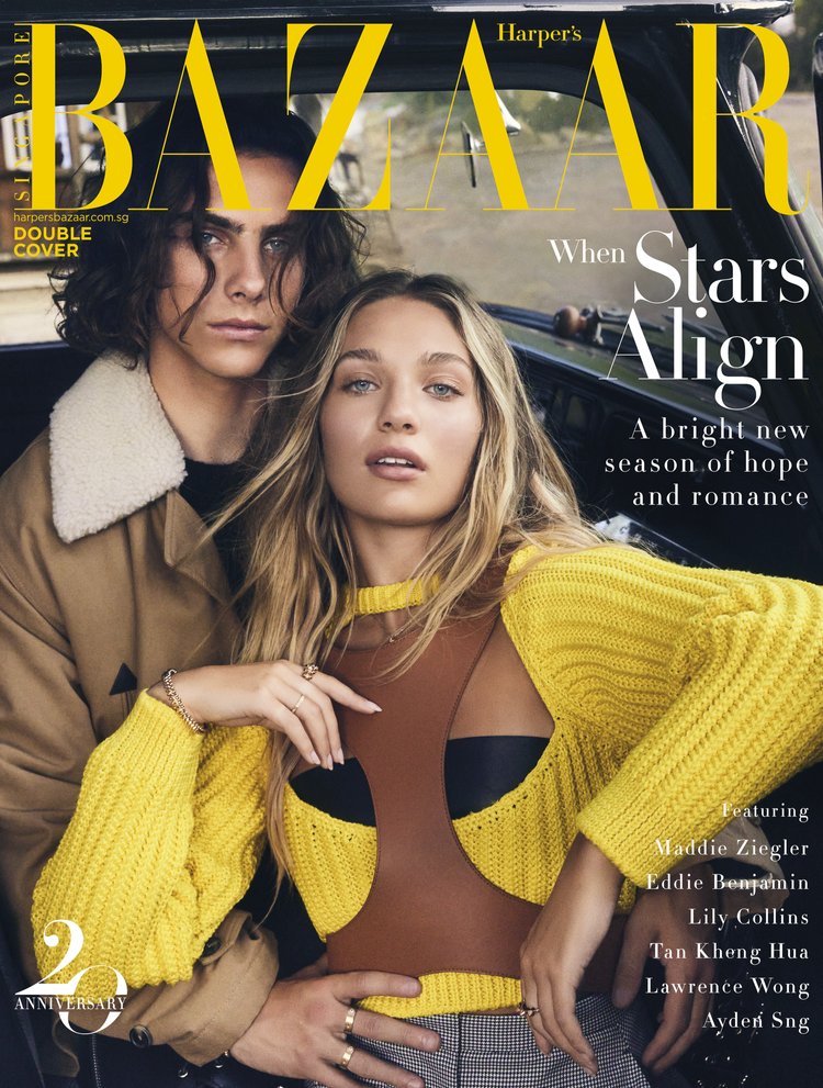 Editorial cover story for Harper’s Bazaar Singapore (September 2021) featuring Maddie Ziegler and musician Eddie Benjamin. Photographed as a fashion-forward couple portrait narrative, the series blends clean, character-led imagery with a modern styling approach designed for global print and digital rollout. Anchored in the magazine’s culture coverage, the story captures the pair’s creative identity and public presence through polished editorial portraiture built to live across cover, feature, and supporting social assets.